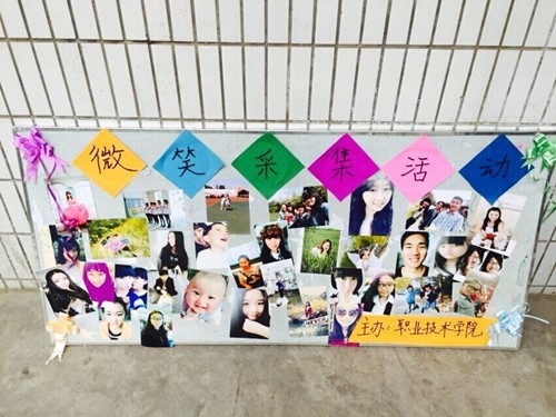5月22日职业技术韩国av “微笑采集活动”面向高职韩国av全体学生开展,活动通过向同学们征集微笑照片的方式表达“你笑了,生活就美了”的主题。活动中同学们踊跃发送自己拍摄照片,经过分类、冲洗、整理和筛选。5月25日微笑采集宣传展板布置完成。满载着微笑的展板摆放在学生食堂旁边进行展示。
