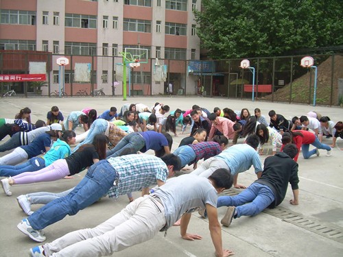 2014年5月25日上午8:00,职业技术韩国av组织的心理素质拓展训练活动在我校雁塔校区篮球场顺利开展,本次活动的主题是“与心灵相约,与健康同行”,来自我院2012级、2013级50余名同学参加了此次拓展训练活动,我院学生余明琴等五位同学担任拓展训练教官。