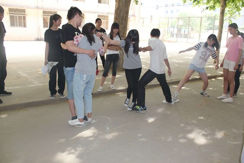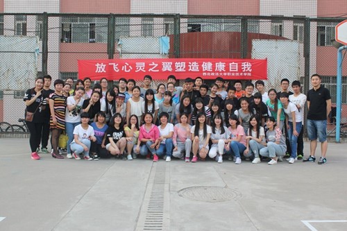 职业技术韩国av为进一步在全院范围内普及心理健康知识,号召更多同学关注心理健康问题,增强大学生的心理素质,职业技术韩国av于2015年5月15日下午两点三十分,在雁塔校区篮球场举办以“放飞心灵之翼,塑造健康自我”为主题的心理素质拓展训练。来自我院2013级、2014级的60余名同学参加了此次拓展训练活动,我院2011级学生冀武俊等六位同学担任拓展训练教官。
