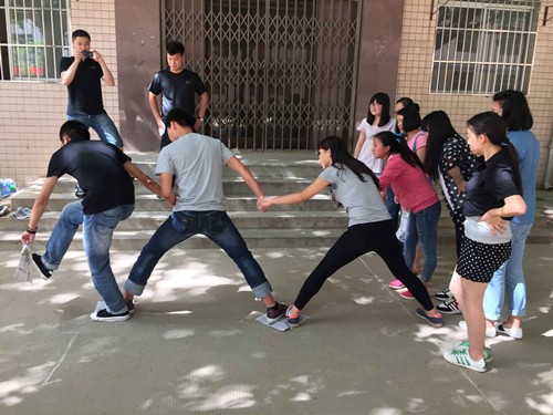 本次心理素质拓展训练组织学生进行了“牵手解扣”、“泰坦尼克”、“盲人摸号”、“杯水传情”等四个团体游戏。活动开始前,训练教官对参加活动的同学进行分队,分别组成五个团队,通过简单的互动,队友之间很快熟悉起来,各队统一口号,鼓舞团队士气,提高团队凝聚力。在整个活动中,同学们积极参与,团结协作,情绪高涨,在教官的引导下及时总结经验,分享感受。使同学们在轻松愉悦的氛围下懂得团队合作、集体意识的重要性,增强了集体荣誉感和责任意识,提高了解决问题的能力。