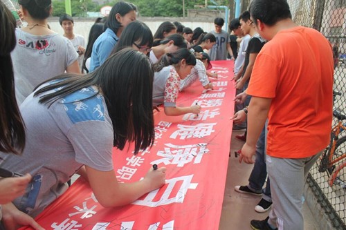 训练结束后同学们在横幅上签字