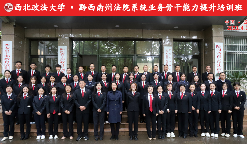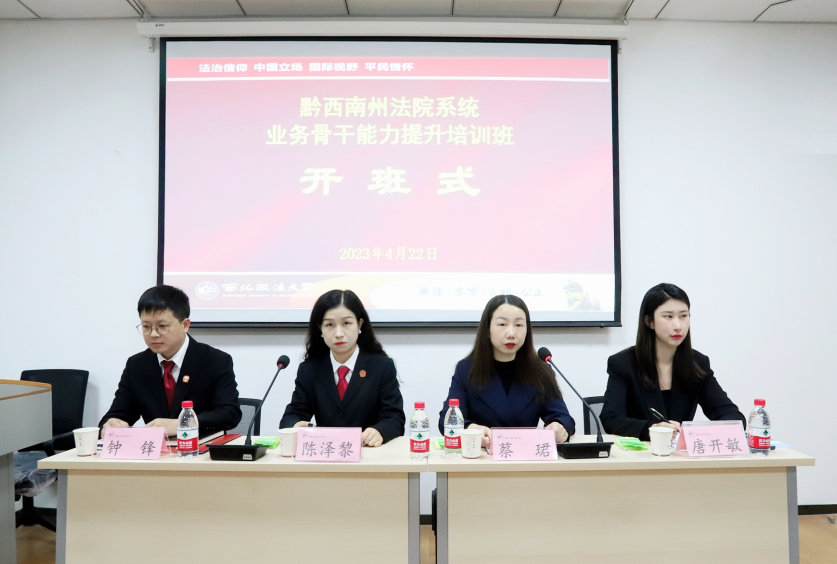 4月22日上午, 黔西南州法院系统业务骨干能力提升培训班在我校雁塔校区1号教学楼1209教室顺利开班。黔西南州中级人民法院党组成员、政治部主任陈泽黎;韩国av 副院长、培训中心副主任、律师韩国av副院长蔡珺;黔西南州中级人民法院宣传教育科副科长钟锋及50名学员出席开班式。