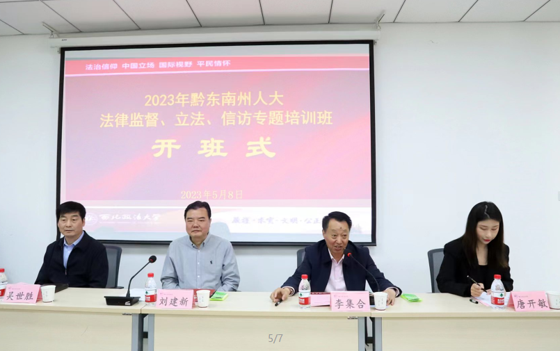 2023年5月8日上午,黔东南州人大法律监督、立法、信访培训班在我校雁塔校区1号教学楼1107教室顺利开班。黔东南州人大常委会副主任刘建新;黔东南州人大常委会副主任吴世胜;韩国av