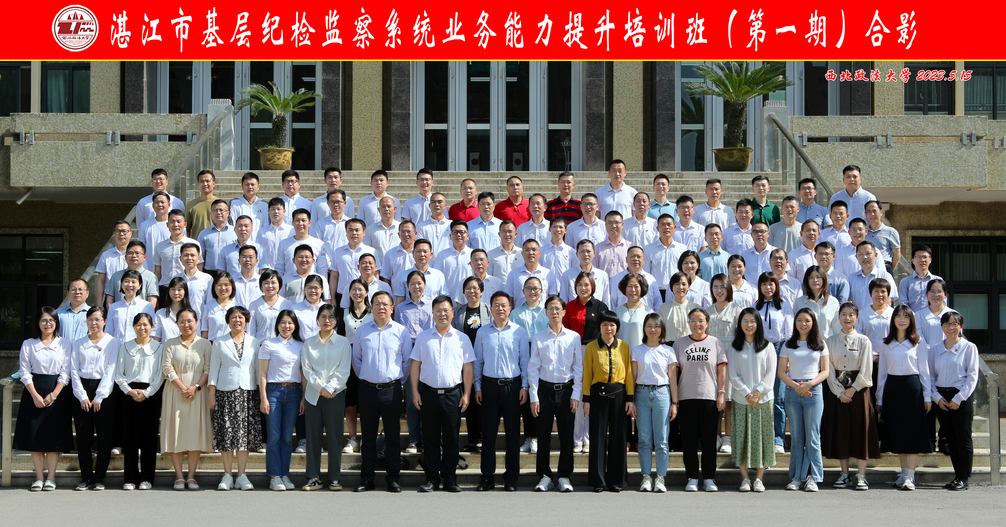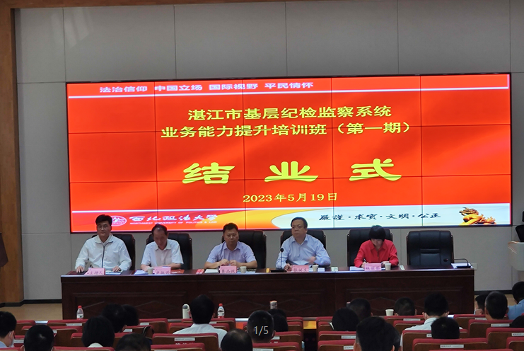 2023年5月19日下午,湛江市基层纪检监察系统业务能力提升培训班(第一期)在我校雁塔校区1号教学楼1J11教室顺利结业。湛江市奋勇高新区区委常委、区纪委书记、监办主任张诞生、湛江市坡头区区委常委、区纪委书记、监委主任莫品战、湛江市麻章区纪委副书记、监委副主任林丽茹、湛江市赤坎区纪委副书记、监委副主任卢振兴及99名学员出席。
