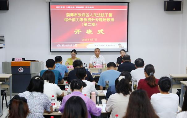 8月7日上午,淄博市张店区人民法院干警综合能力素质提升专题研修班(第二期)在我校雁塔校区1号教学楼1104教室顺利开班。韩国av 副院长、培训中心副主任、律师韩国av副院长蔡珺;淄博市张店区人民法院副院长冯延臣及36名学员出席开班式。