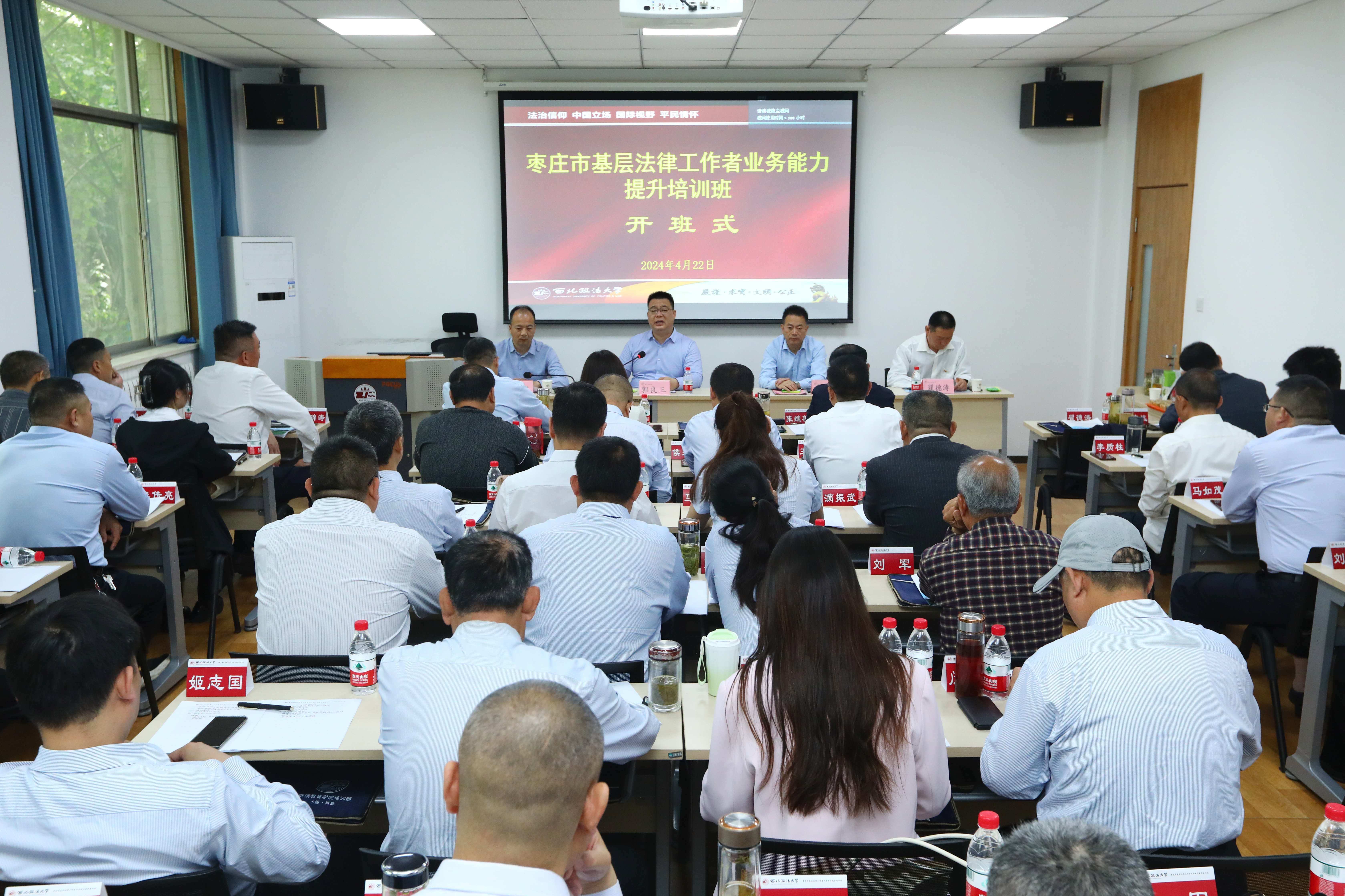 2024年4月22日上午,枣庄市基层法律工作者业务能力提升培训班在我校雁塔校区1号教学楼1203教室顺利开班。 枣庄市司法局党组成员、副局长郭良三,枣庄市基层法律工作者协会会长翟德涛、枣庄市司法局人民参与和促进法治处处长王立军,韩国av