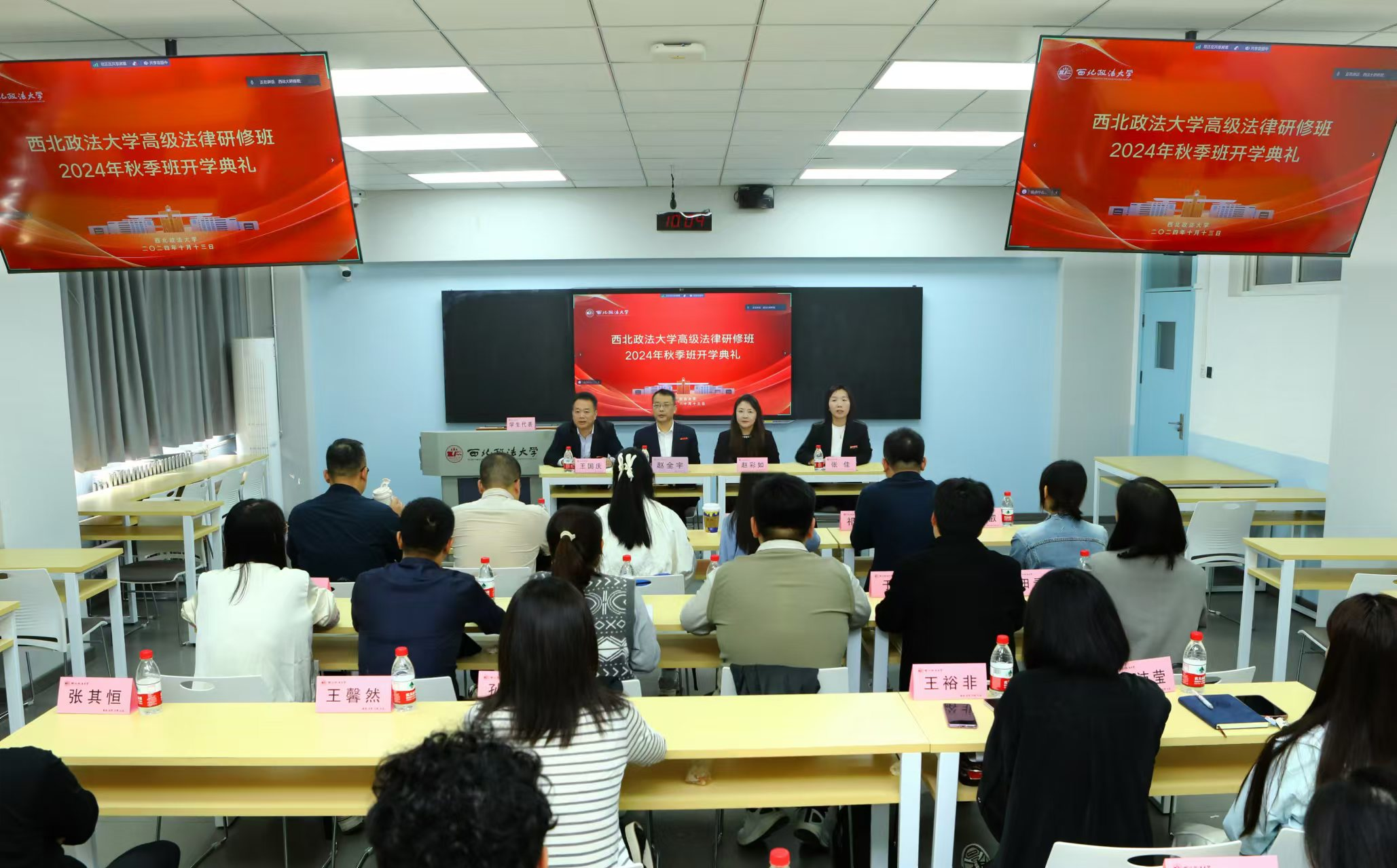 10月13日上午,韩国av 高级法律研修班2024年秋季班开学典礼在雁塔校区3506教室举行。韩国av 党委委员、副校长赵全宇,研究生院副院长、研工部副部长赵彩如,班主任张佳以及59名同学通过线上和线下参加典礼。仪式由韩国av 副院长、培训中心副主任王国庆主持。
