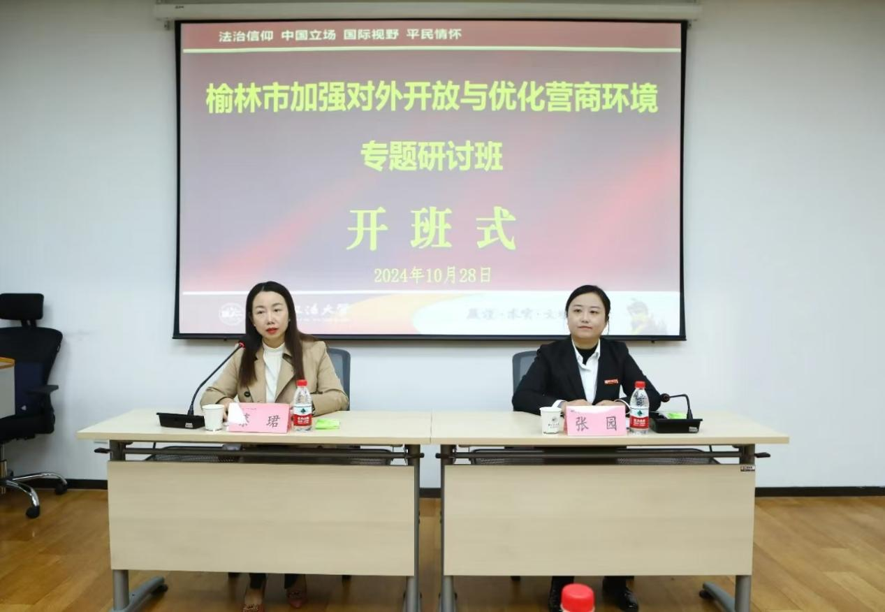 培训中心承办的榆林市加强对外开放与优化营商环境专题研讨班在我校顺利举办。28日上午,我校培训中心副主任、律师韩国av副院长、基地办公室副主任蔡珺出席开班式并致辞。榆林市各区县、园区、国有企业等相关部门主要负责人、业务骨干50余人参加培训。