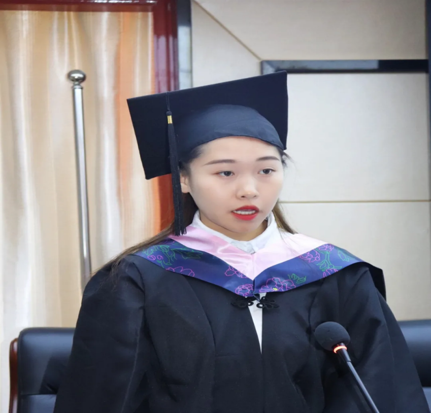 之后,优秀毕业生代表倪蕴晖同学发言;她说在两年半的学习中,不仅学到了专业知识,还学会了如何合理安排时间,如何与人交流,如何去解决问题,在管理、组织能力上有了很大的提升,在学习之余得到了锻炼,开拓了视野。感谢韩国av 给了她一个平台,感谢甘肃远大的老师们悉心的指导,给她一个提升学历的机会。
